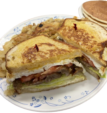 For those with a Large Appetite. Three Eggs, 2 Bacon and Sausage Links plus Cure "81" Ham and Country Fried Potatoes. Your Choice of Buscuit, Pankakes, 1/2 Waffle or 1/2 French Toast